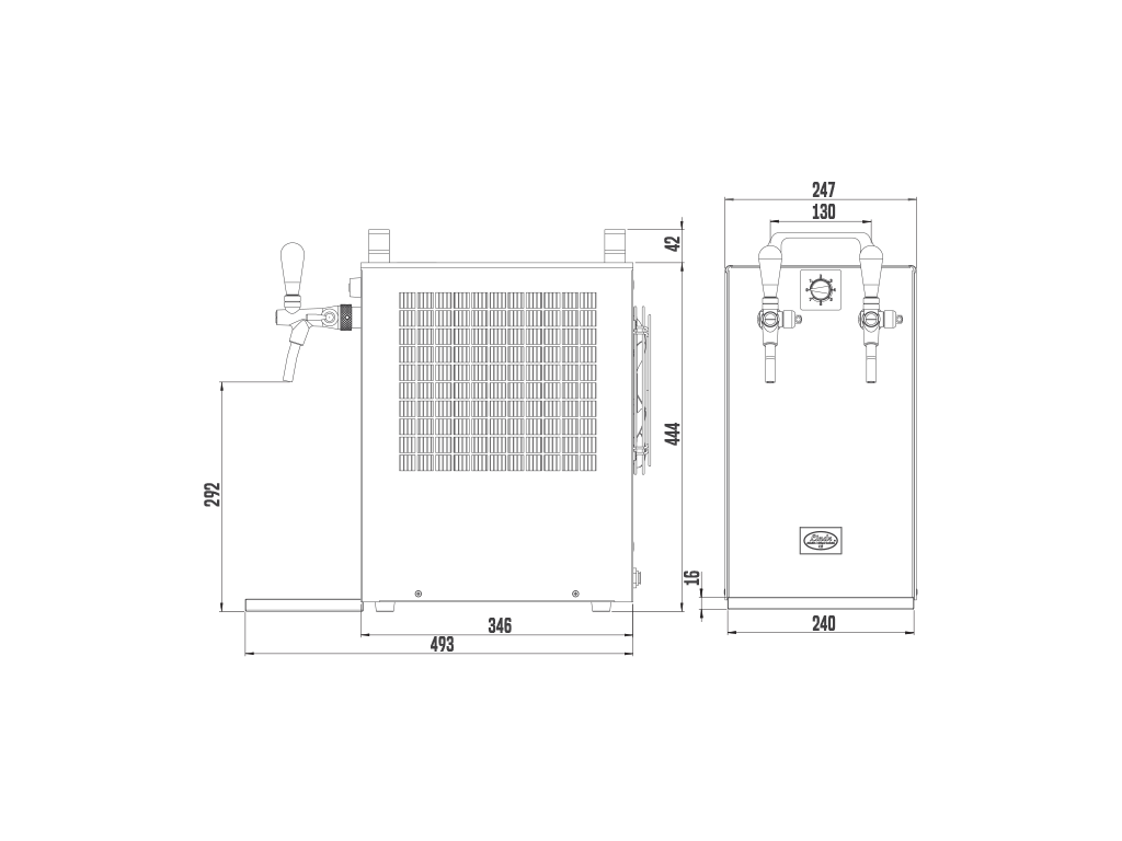 VÝBAVA – Štandardnou dodávanou súčasťou je termostat umožňujúci plynulú a presnú reguláciu teploty nápoja, výčapný kohút(y), kľúč na kohúty, odkvapová miska a rýchlospojky pre ľahké pripojenie.